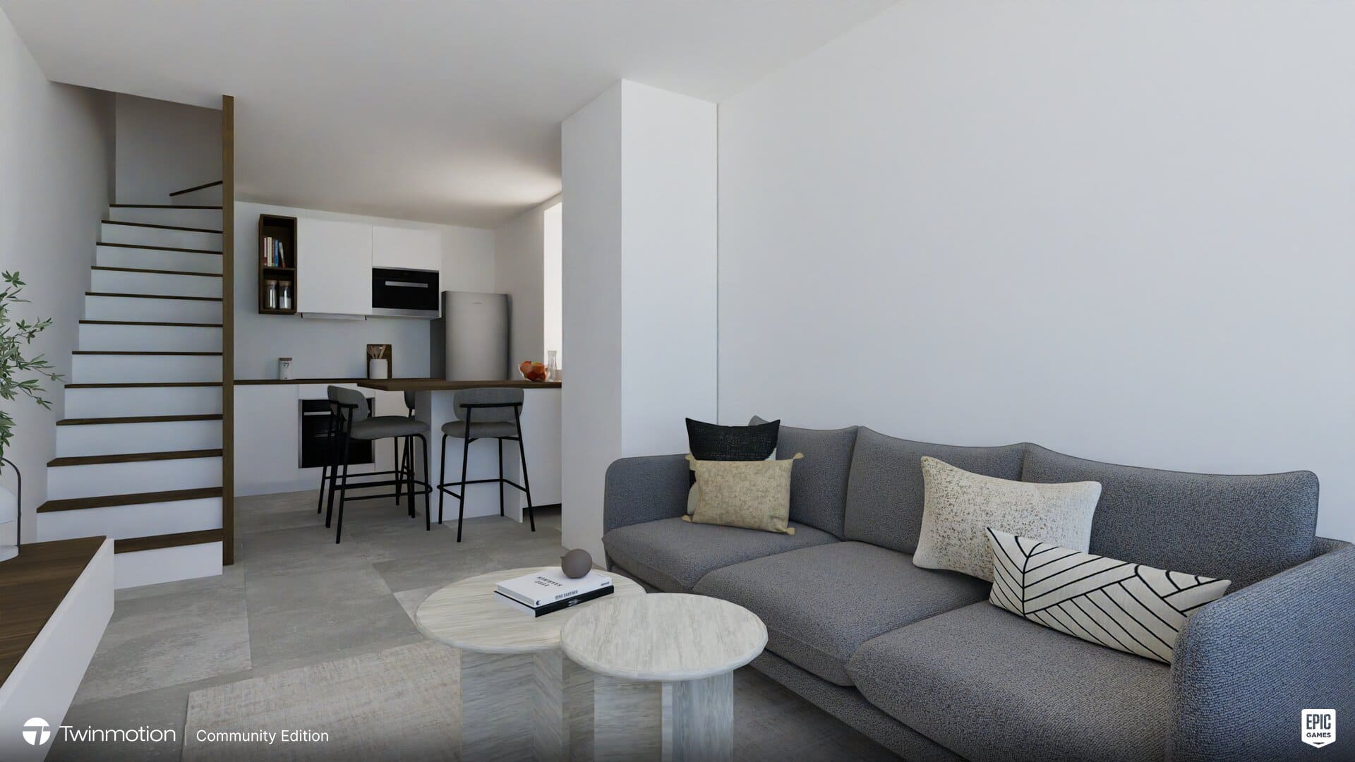 À l’intérieur, tout a été conçu pour accueillir une vie de famille : un séjour chaleureux avec une cuisine ouverte entièrement équipée, baigné de lumière grâce à une grande verrière. L’escalier, pièce centrale du projet, dessert l’étage où se trouvent une chambre, une salle d’eau et un grand dressing.