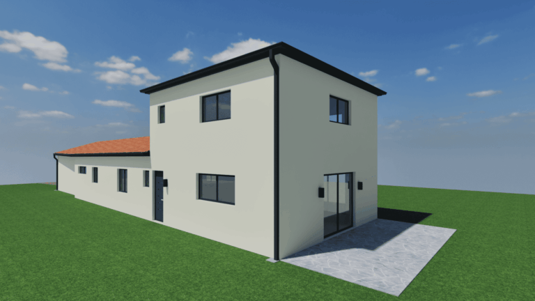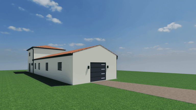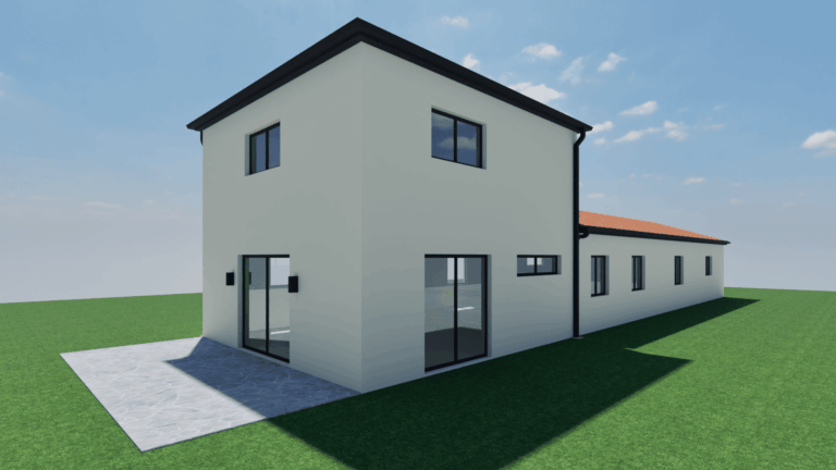 Sur un terrain plat, cette villa de 137 m² avec garage accolé de 35 m² a été conçue pour offrir un cadre de vie lumineux, confortable et évolutif. La construction, en R+1 sur vide sanitaire (hors garage), s’organise en deux volumes superposés : un rez-de-chaussée fonctionnel, et un étage en mezzanine qui ouvre de nombreuses possibilités d’usage.