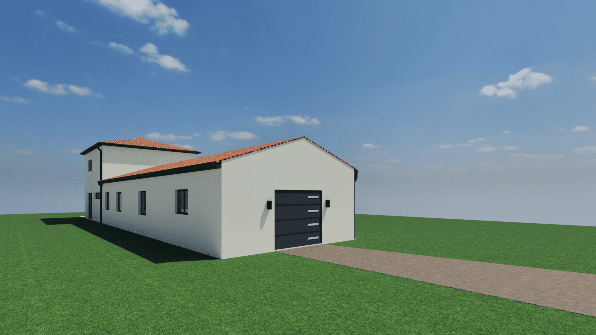 L’enduit blanc cassé apporte douceur et chaleur aux façades, tandis que la toiture en tuiles canal, teinte panaché occitan, s’inscrit dans une écriture traditionnelle, en harmonie avec leur environnement.